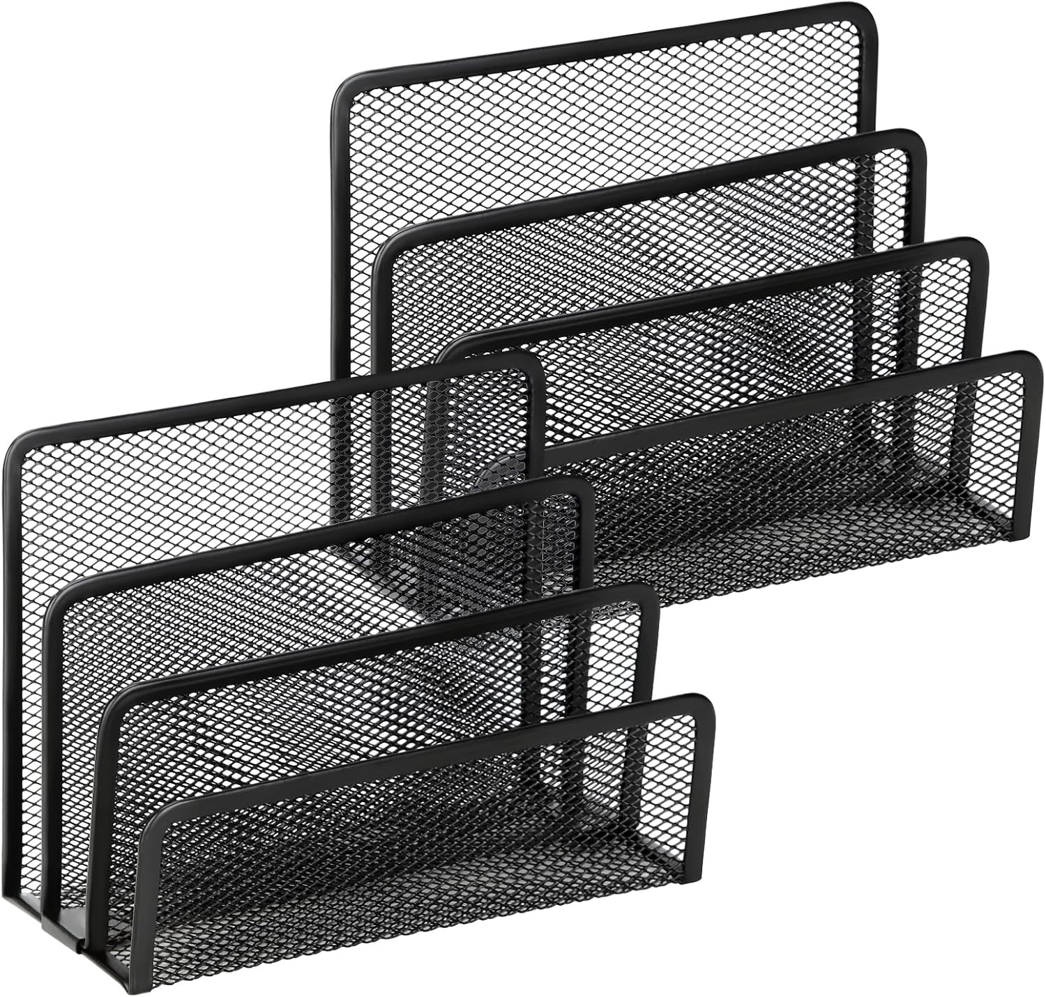 Desk Organizer and Accessories, 2-Tier Computer Monitor Stand Riser with Drawer and 2 Pen Holders, Office Desk Accessories for Office Supplies, Black
